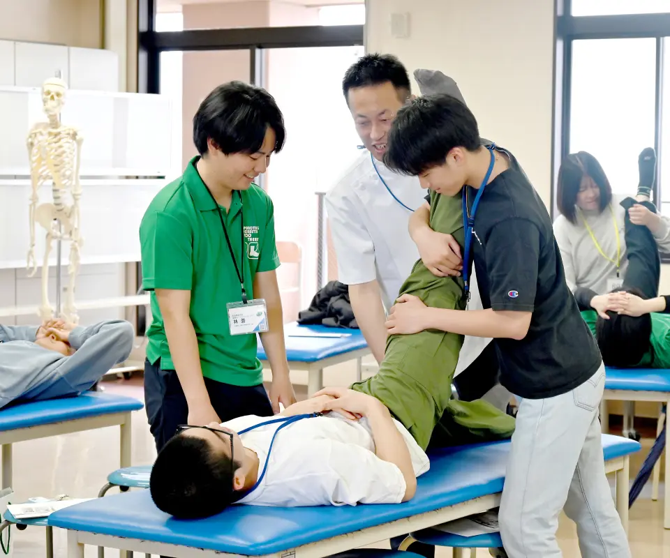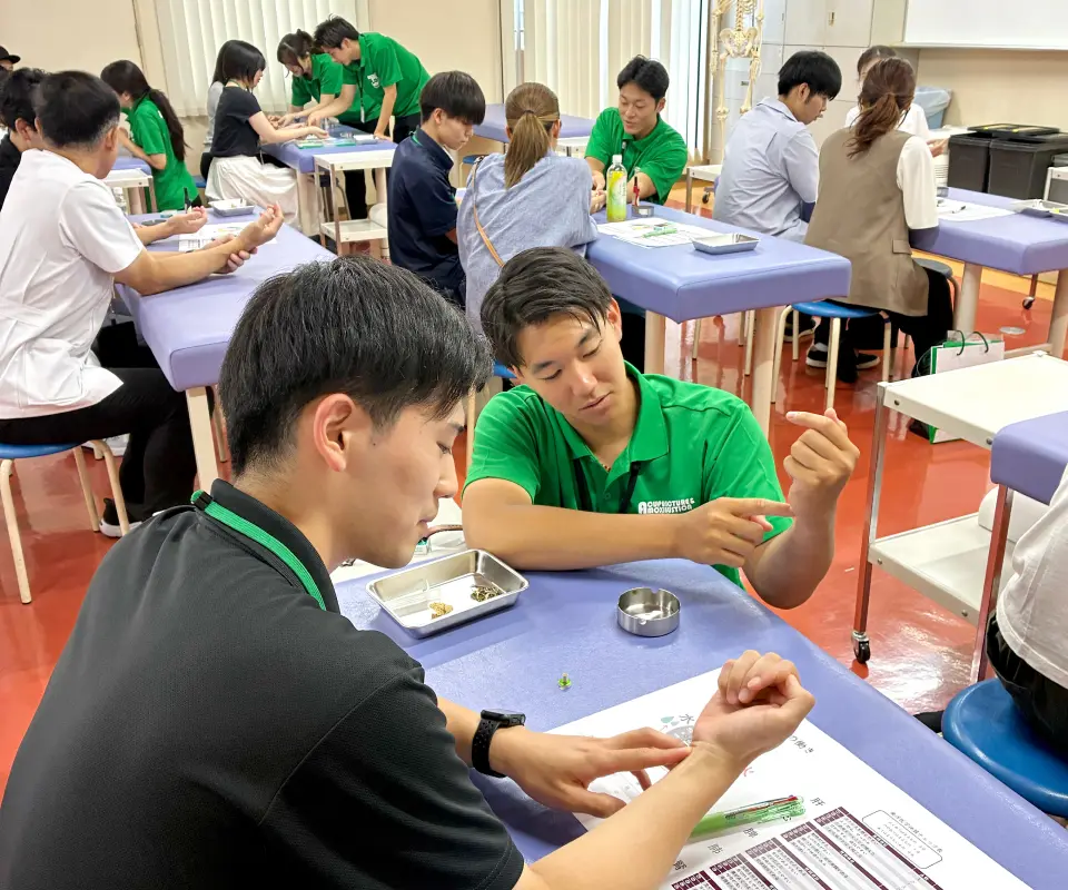 Wライセンスをめざす方、職業選択を迷っている高校生にオススメ!先輩スタッフと一緒に柔道整復師&鍼灸師の仕事を体験しよう。
