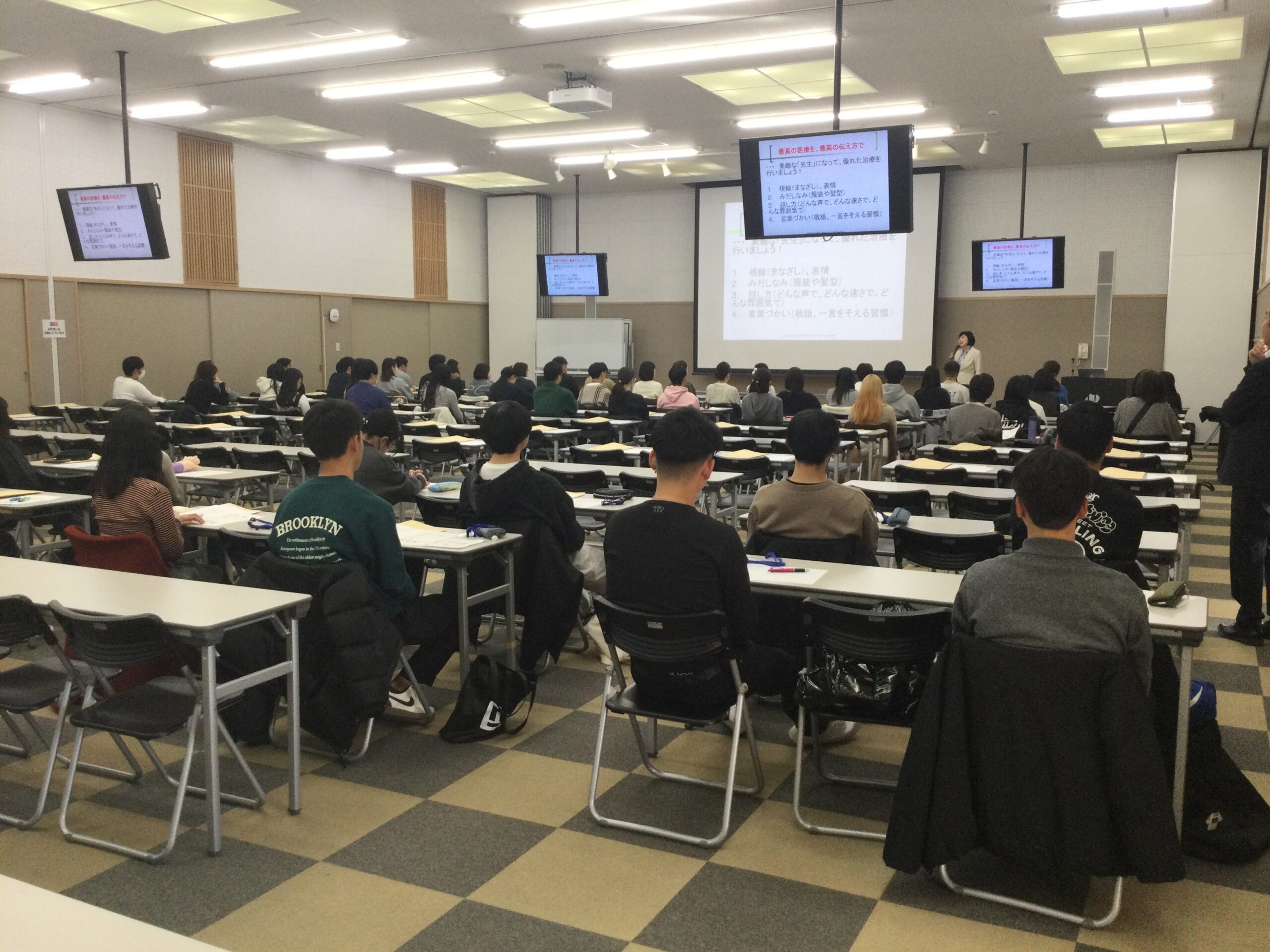 当日は、医療人として求められる基本的なマナーや心構えを学ぶマナー講座に加え、グループワークや体験授業を実施しました。