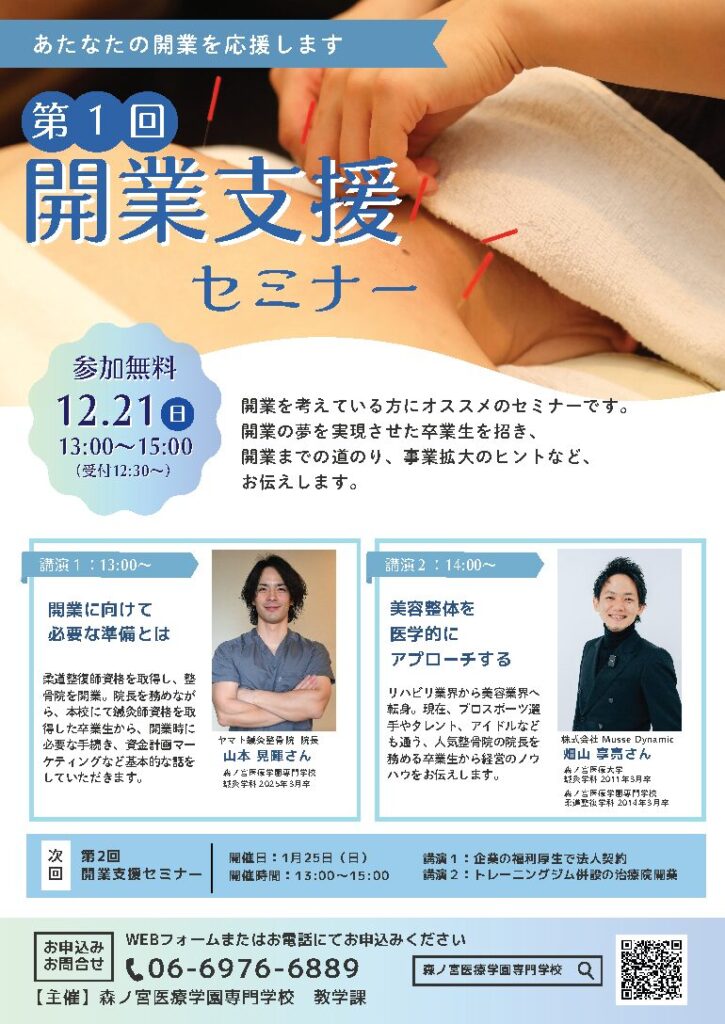 また、お昼からは本校卒業生による「開業支援セミナー」を開催します!