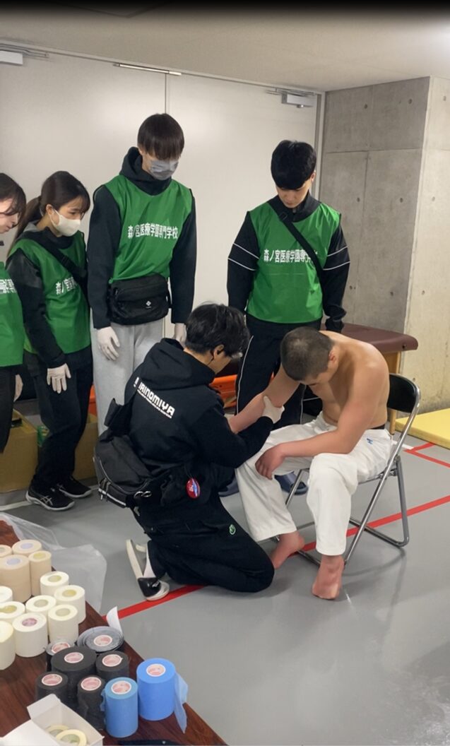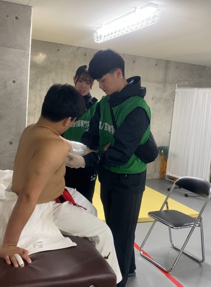 本校の柔道整復学科教員および学生・卒業生が帯同しました。